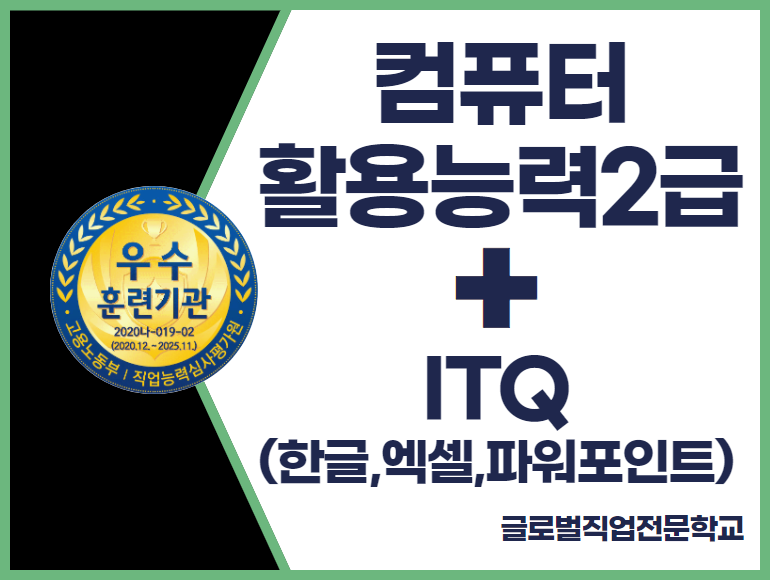 컴퓨터활용능력2급+ITQ(한글,엑셀,PPT)자격증 취득과정 (09:00~16:50)