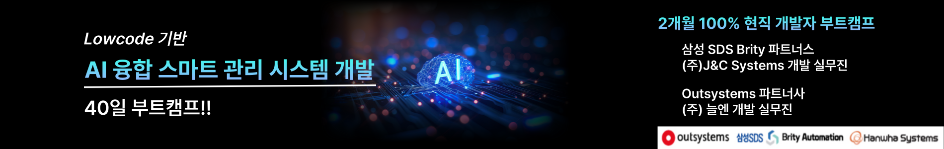 K-디지털 트레이닝 > K-Digital IT 개발 채용예정자 지원사업 40일부트캠프-LowCode 기반의 AI 융합 스마트 관리시스템 개발 |