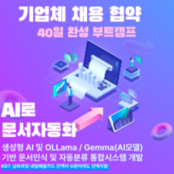 K-디지털 트레이닝 > K-Digital IT 개발 채용예정자 지원사업 심화_AI학습모델(Ollama,Gemma)과 생성형AI을 활용한 문서인식,분류자동화시스템개발 (잔액0원도 전액무료) |